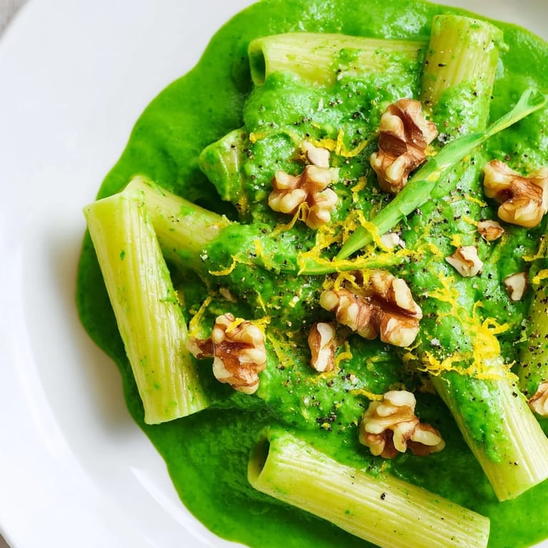 Save The first time I made this bright green sauce, my roommate walked into the kitchen and asked if I was making something for St. Patrick's Day. But when she tasted it, skeptical about spinach pasta, she went back for seconds. That vibrant color comes from blending baby spinach with toasted walnuts until it's impossibly smooth, like something you'd order at a fancy restaurant but can actually make on a Tuesday night.