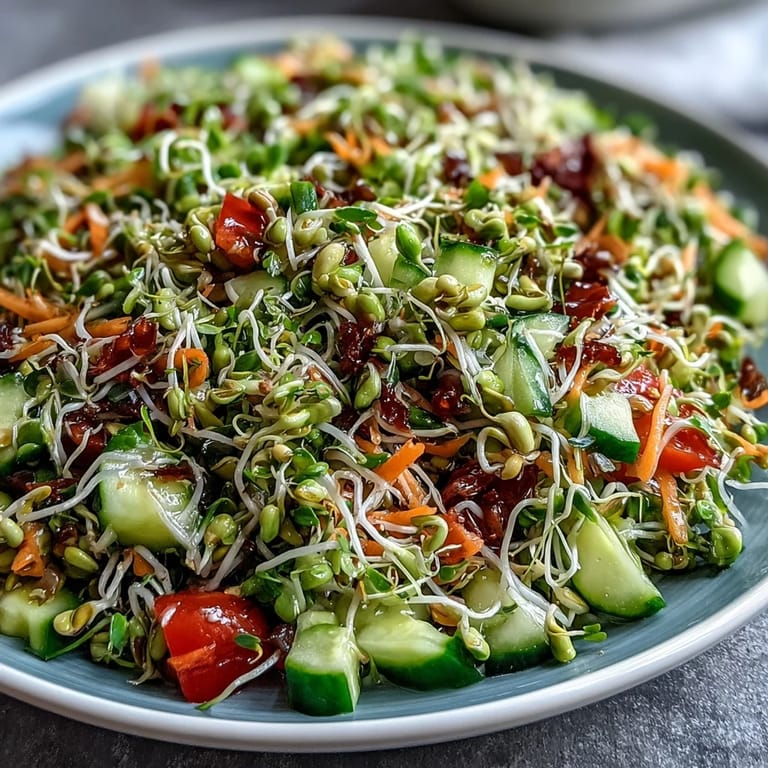 Save My friend Maya showed up one Tuesday with a container of sprouted seeds she'd been cultivating on her windowsill, and insisted we turn them into lunch right there and then. I'd never really thought about sprouts as anything more than a garnish until she walked me through how alive they taste, how the radish ones have this peppery snap that makes your mouth wake up. We threw together whatever vegetables were hanging around my kitchen, squeezed a lemon, and suddenly we had something that felt less like salad and more like eating pure energy. It's become my go-to whenever I need to feel lighter, sharper, and honestly, a little bit better about myself.