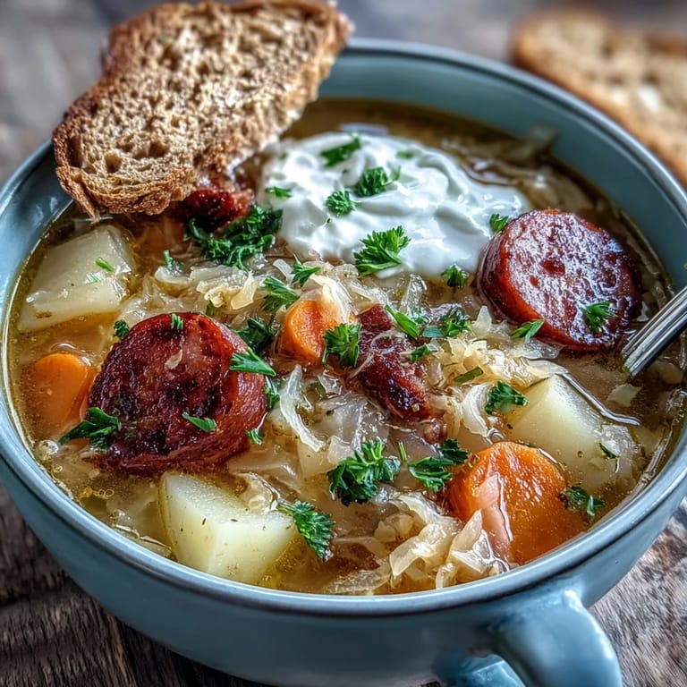 Save My grandmother kept a ceramic crock of sauerkraut in her cellar that seemed to last forever, and whenever winter arrived, that tangy fermented cabbage became the foundation of something warm and alive. One afternoon, while she stirred a pot of this soup, I asked why she never rushed it, and she simply said the cabbage had already done the waiting, so the pot deserved time too. That lesson stuck with me—this isn't a soup you make when you're in a hurry, it's one you make when you want to slow down and let simple ingredients transform into something deeply nourishing.